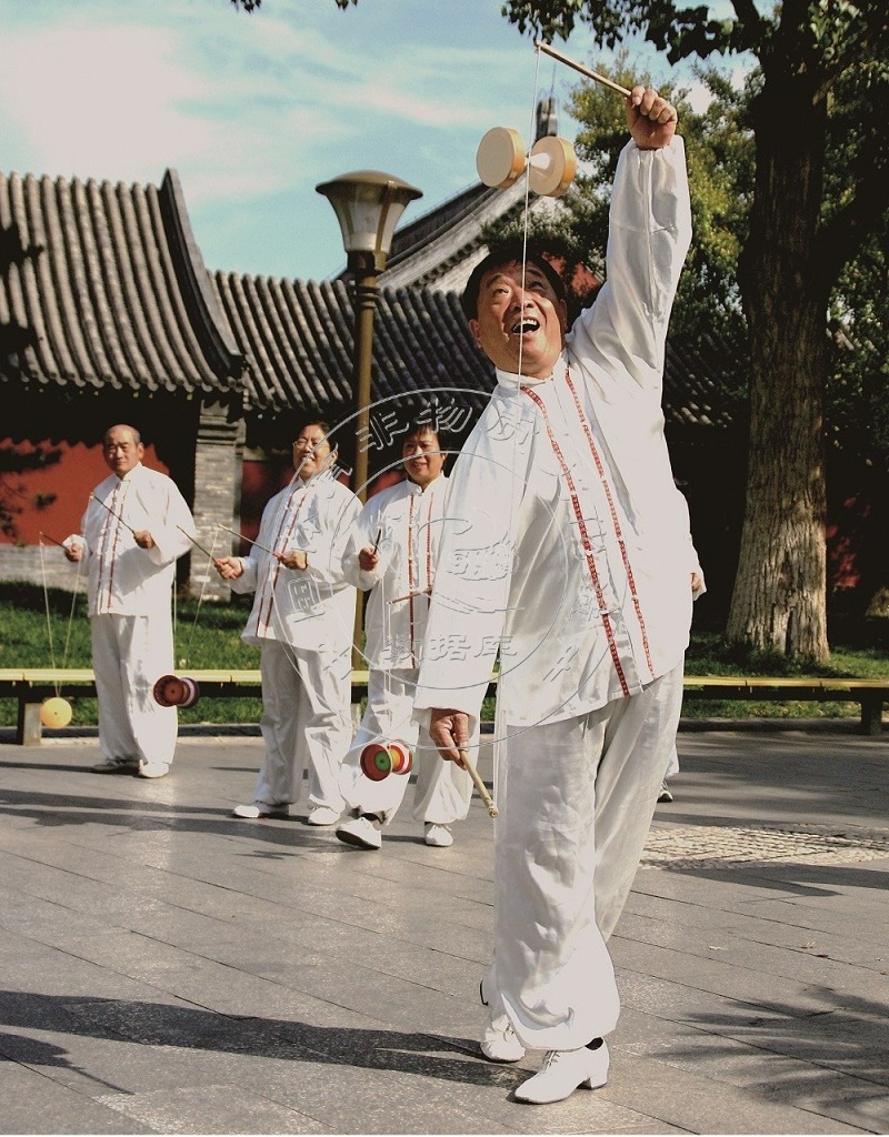 三是品种多。茶杯盖、茶壶盖、锅盖、酒壶、圆桌面、自行车轱辘等都被纳入空竹系列。