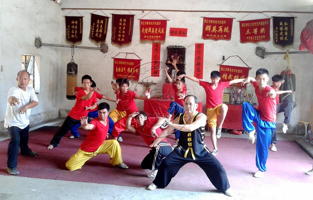 湛江赤坎过去的民间武馆有两种,一种是设在祠堂、庙宇或禾堂的乡村武馆,多由本村擅武之人或外聘“功夫头”任教头,授徒习武多在农闲时候。另一种是城镇武馆,多由在武术界声望较高的人任师傅,学徒来自社会各阶层。两种武馆都以健身自卫为宗旨,拜师时,乡村武馆向祖先神位跪拜,城镇武馆向关公像或华光神膜拜。