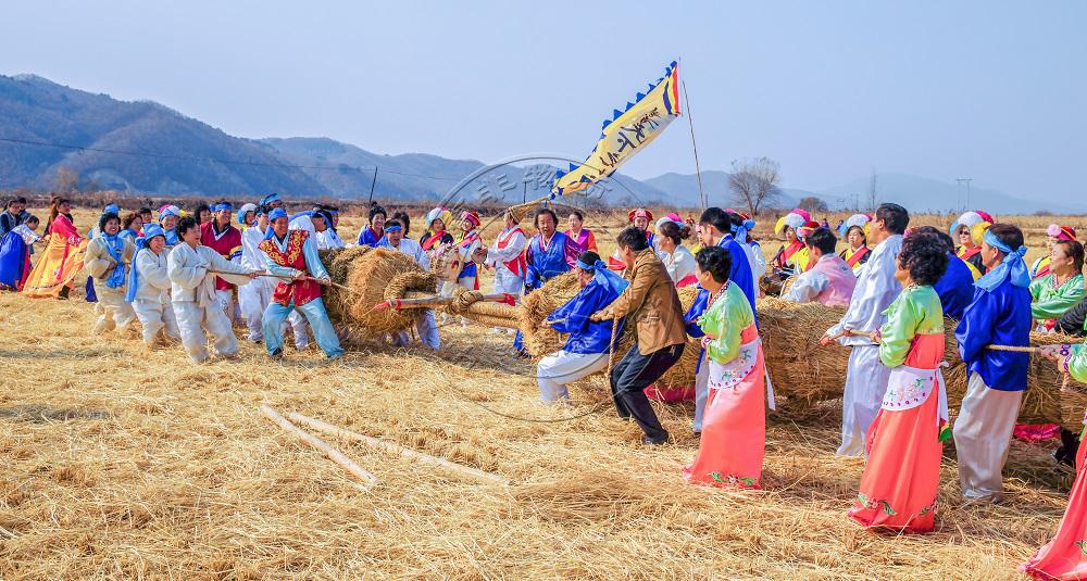 “朝鲜族拔草龙”主要通过力量的比拼,反映朝鲜族古老部落之间婚姻嫁迎娶的风俗文化特征。它即是民间传统文化的一种表现,也是人民群众借以达到自娱自乐的一种方式。游戏时,把两条巨大的草龙头部相连,双方派出人数、男女比例相等的人员,各执草龙身上的草绳,随着裁判的一声令下,双方开始比赛。两队分别代表“男方”和“女方”,比赛如若男方获胜,即新郎方胜,则用牛车迎娶新娘,欢天喜地一路载歌载舞而去。比赛如若女方获胜,即新娘方胜,则把新娘围起歌舞不停,以示胜利,然后再次举行比赛,直到男方获胜,成功赢取新娘为止。游戏中,双方都配足米酒,不论哪一方胜,都要狂饮米酒用以助兴。一般在表演中,大多数是以男方胜为结果,女方捧米酒等敬男方或向新郎新娘敬贺等,然后,女方亲友尾随男方队伍歌舞欢送。在原有的习俗上,一般“女方”大多都表现出一定的谦让,让“男方”获胜,较为顺利的赢取新娘。现在的比赛保留原有的寓意,但是“女方”不再主动地谦让,尽量保持游戏的观赏性和娱乐性。