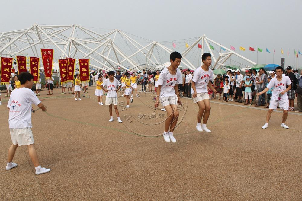 长绳绳技:花样跳绳中,跳长绳最为引人入胜,包括大绳绳技、一绳二波、双绳内抡和多绳套跳等。