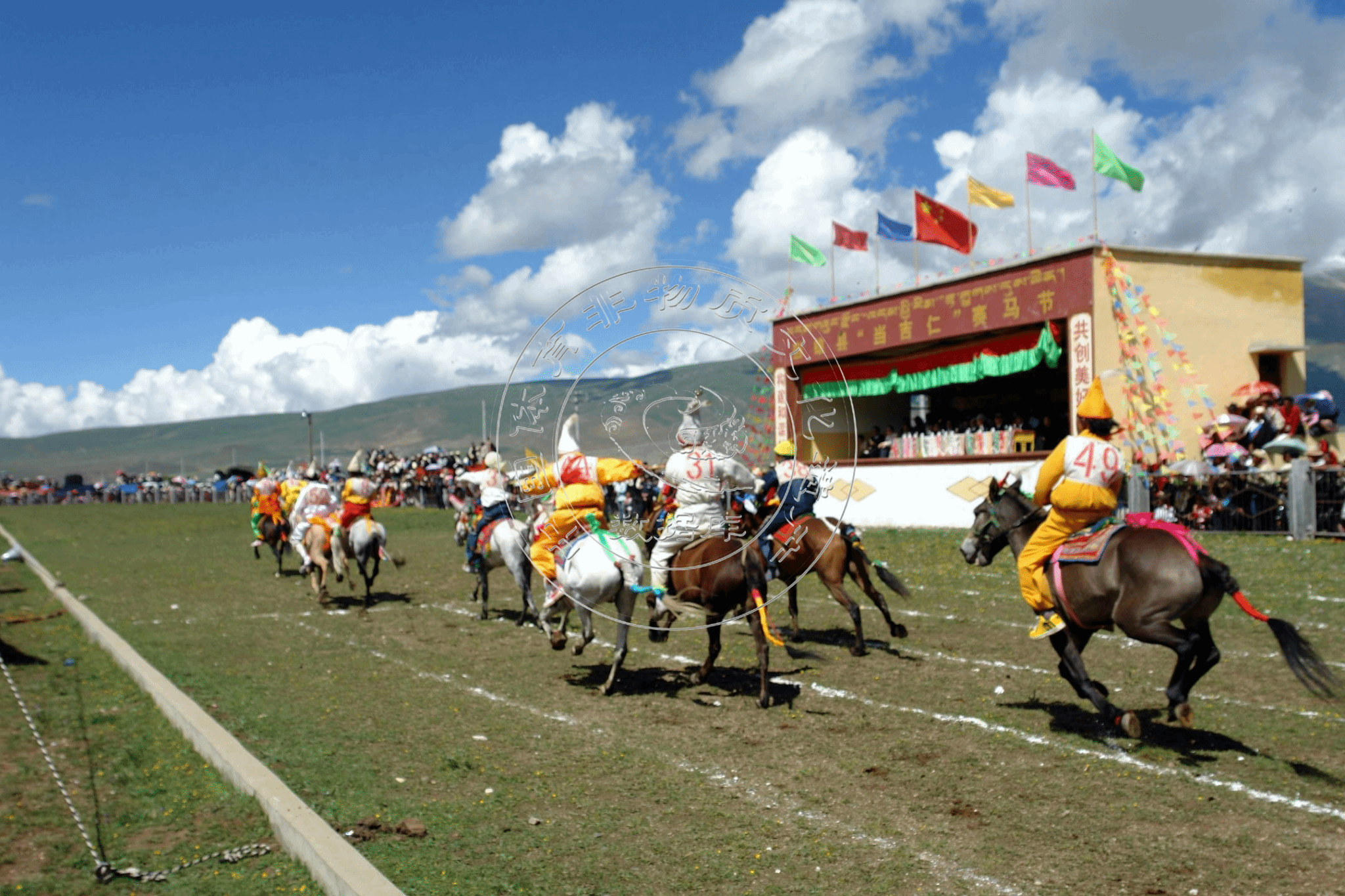 “当吉仁”赛马会在每年藏历七月举行。该盛会主要举行三天,旧时将延续一个月,现今改为七天。“当吉仁”赛马会没有一个整体表演,只有分项表演。比如马术表演、文艺表演、篝火表演等。主要内容是赛马,而赛马会期间赛马比赛项目主要有(1)马长跑:10000米、(2)马中跑:5000米、(3)马短跑:3000米、(4)走马:5000米、(5)马术表演、(6)跑马射箭、(7)马上捡哈达。