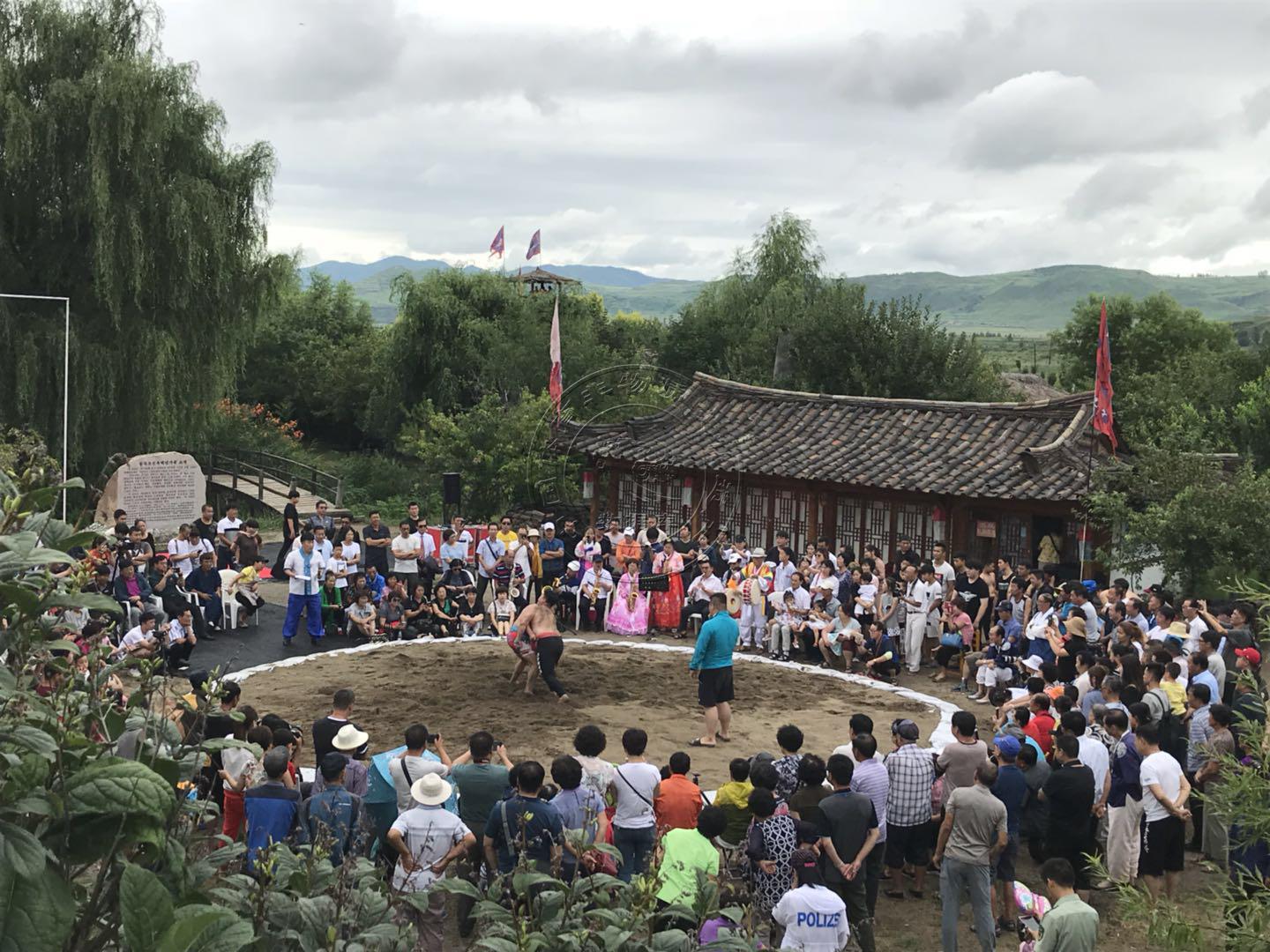 朝鲜族式摔跤历史悠久,是劳动人民在长期的生产生活中不断发展形成的习俗。每逢端午节、中秋节时,妇女进行秋千、跳板比赛,而朝鲜族男子便在沙地上以摔跤来角逐力气和技巧。