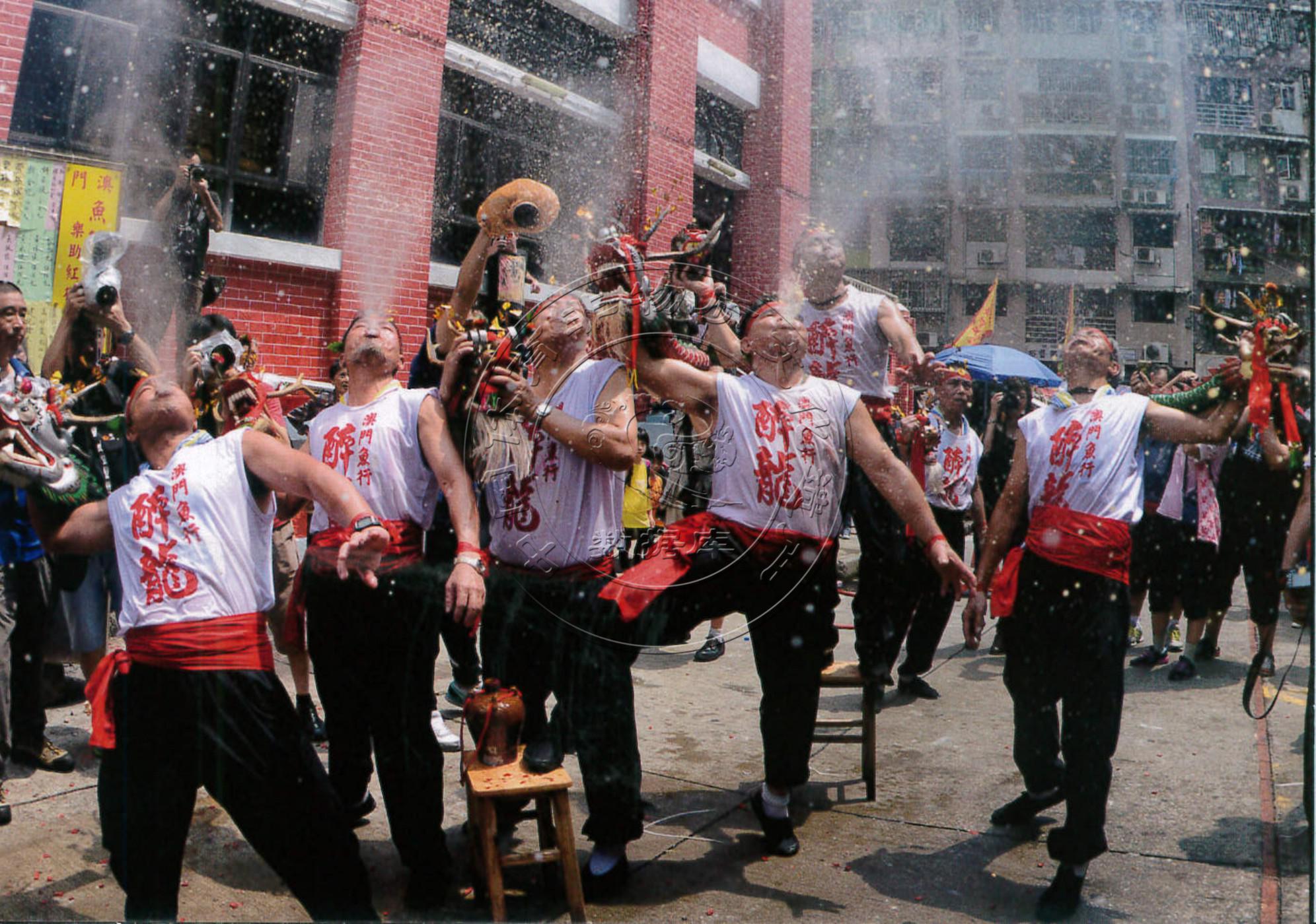舞者的眼神极为重要,与戏曲表演的“关目”不遑多让,眼神始终跟着龙头而去,舞者适当加以翻滚动作。在阳光映照下,加上米酒四喷,真是出神入化。学舞醉龙,最紧要是“腰”和“马”。“腰”是指腰力,“马”是扎马步。这些都牵涉到舞者的武术功底,只要具备了这些基本功,谁都可以舞醉龙。通常先是舞龙尾,熟练了就舞龙头。历年都有年过七旬,白发苍苍的舞龙头者,观众无不举起大拇指称赞“老当益壮”。舞醉龙是九龙一齐巡游的,关键是众龙的龙头龙尾互相配合。