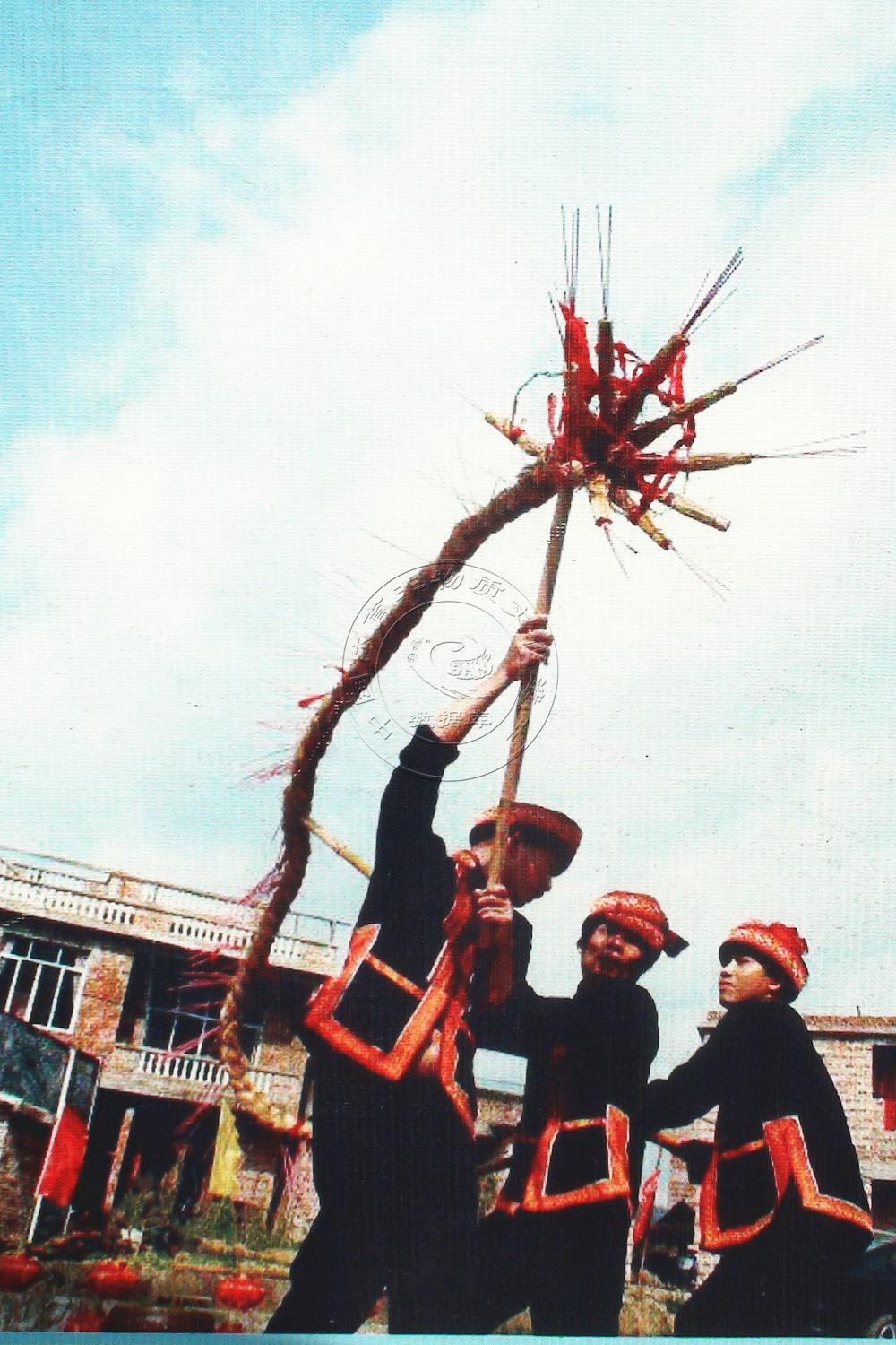 香龙制作工艺简单,通常由节庆活动牵头人(俗称“把师头”)组织会跳“香龙舞”的瑶胞们捆扎,其捆扎材料为稻草。