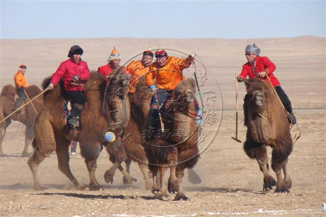 驼球是传统的蒙古族体育竞技项目之一,同时也是蒙古族草原文化中驼文化的重要组成部分,现今已经成为了我国第四批国家级非物质文化遗产的代表性项目。蒙古族驼球是通过两阵对垒,乘驼击球,追逐争抢、最终以获取分数的多少来分出胜负的一种草原团队运动。蒙古族驼球需要球员不但有驾驭赛驼的精湛驼技,也要有一匹健壮的赛驼与球员相互协调配合,同时,还要有准确娴熟的击球技能。目前蒙古族驼球运动主要流传于内蒙古自治区的乌拉特后旗,其次在阿拉善左旗、包头达茂旗、锡盟赛罕塔拉、赤峰克什克腾,乃至蒙古国南戈壁等地也有开展,是一项独具地域色彩和草原民族特点的传统竞技体育项目。