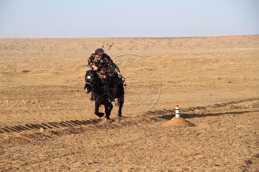 阿拉善地区民族传统体育内容丰富,形式多样,其中“乘马射箭”是一项独具地方民族特色的传统体育项目之一。乘马射箭,也称“骑射”,是蒙古族传统体育项目之一,是蒙古族“男儿三技”中骑马和射箭的完美组合。它既属于马术表演项目,又属于马上演武项目,是集勇敢、技艺、智慧于一身的民族传统体育项目,极富表演性和观赏性。乘马射箭是在蒙古族长期游牧与狩猎的生活中沿袭传承下来的,并逐渐演化成体育竞技和民族娱乐的项目之一,深受群众喜爱,在当地有着广泛的群众基础。目前,乘马射箭项目主要分布在内蒙古的阿拉善盟三旗、新疆、青海、甘肃的部分卫拉特蒙古族聚居地。过去在阿拉善左旗各苏木都有热爱乘马射箭的人,现在主要集中在巴彦浩特沿山、乌力吉、巴彦诺日公、巴润别立镇一带。